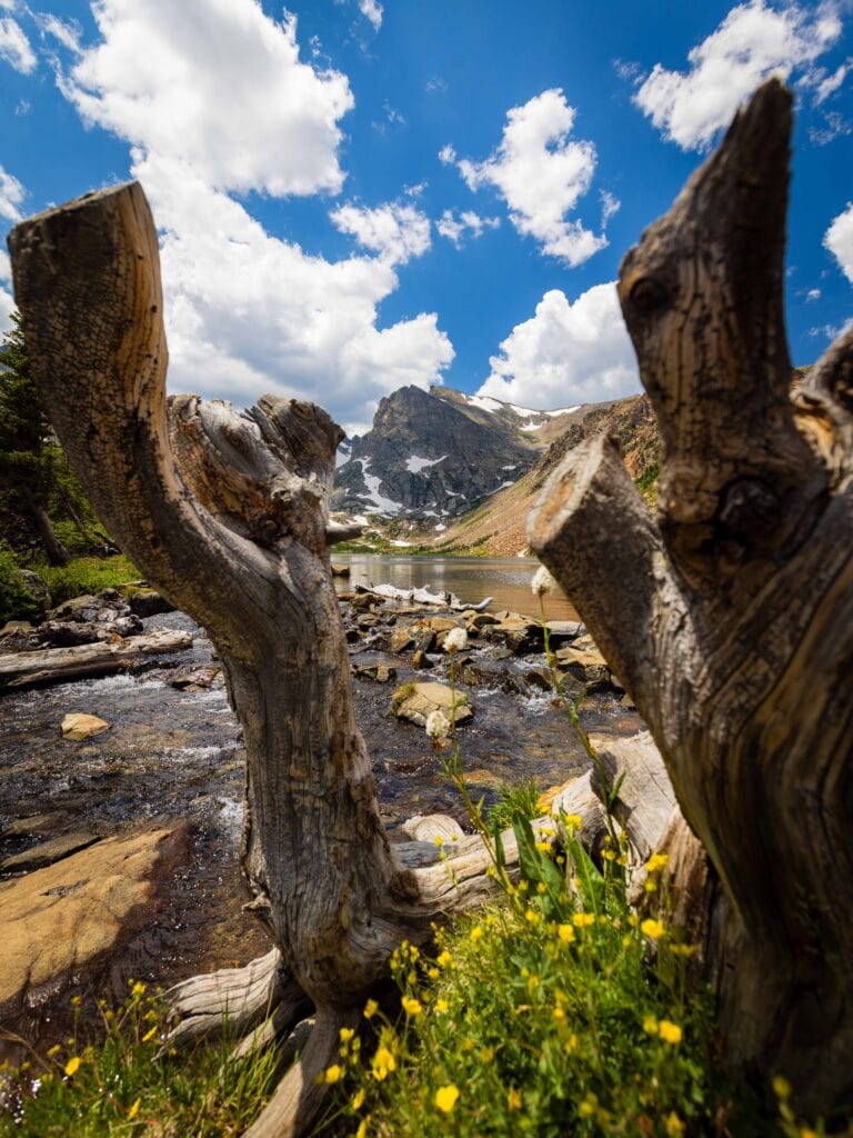 This is where it got good! Not that the earlier hike wasn’t nice, but this is the apex of the hike. As we hiked further in, the forest began to clear and the jagged mountains of the Indian Peaks Wilderness came into view.
