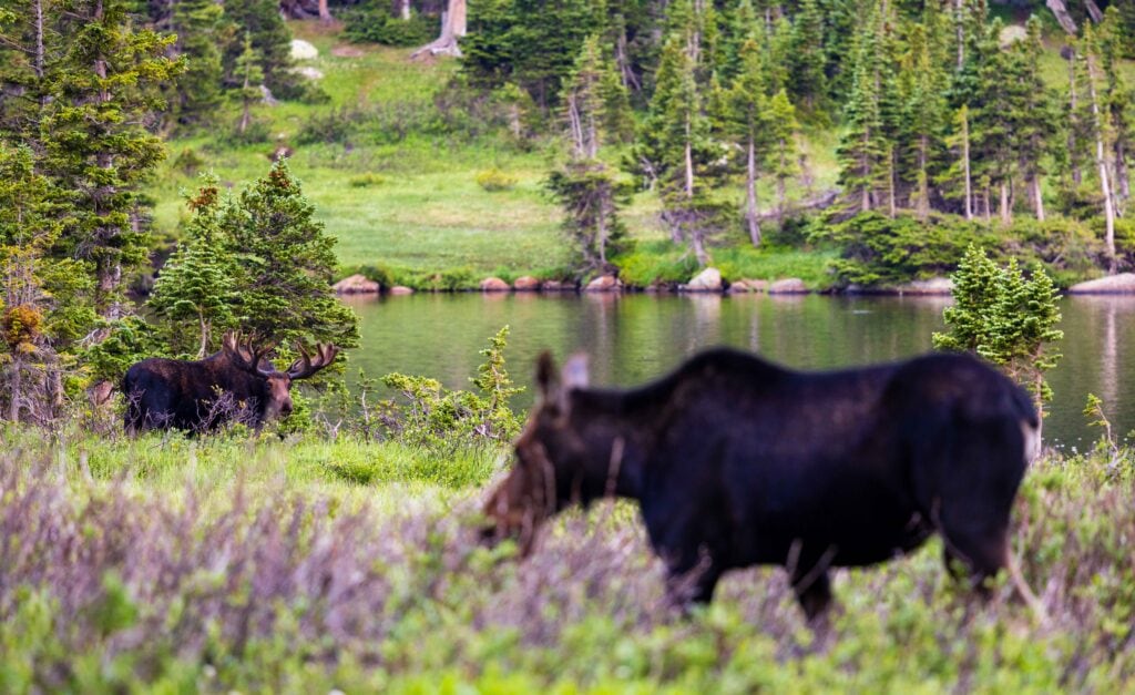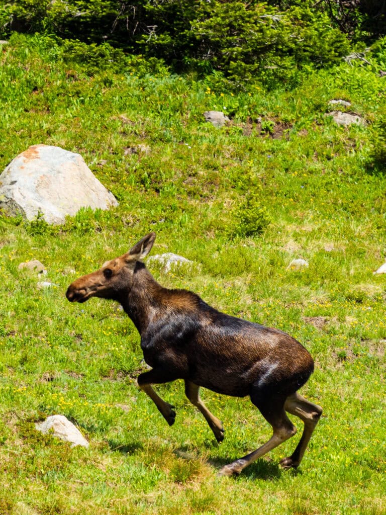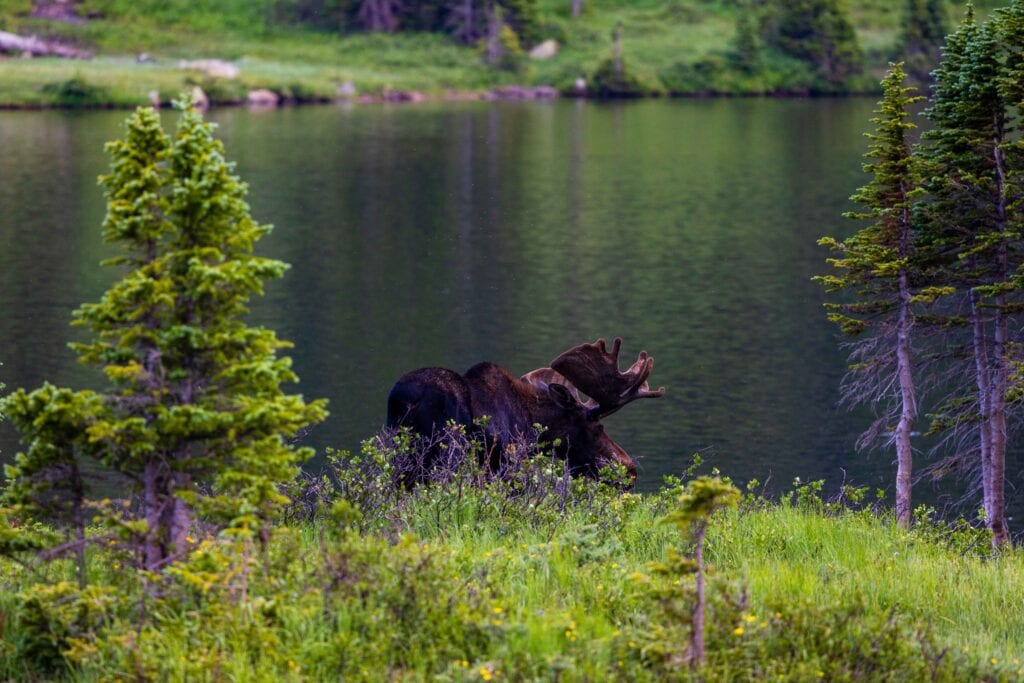Eventually, that moose walked far enough into the meadow that there was no more threat, and we could continue the final 3/4s of a mile to the parking lot. It was a wild day on the trail hiking Lake Isabelle. In all, we saw at least five moose, stunning views, and brilliant wildflowers.