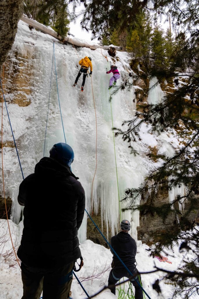 I climbed a couple of times but found it to be a bit too uncomfortable for my liking. The idea of going up a wall in crampons just wasn’t my cup of tea. And that’s okay! The whole point of going out and trying new things is learning what you do and don’t like. Plus, with others finding much more joy in moving like a spider up the wall, I was happy to belay and be a team player.