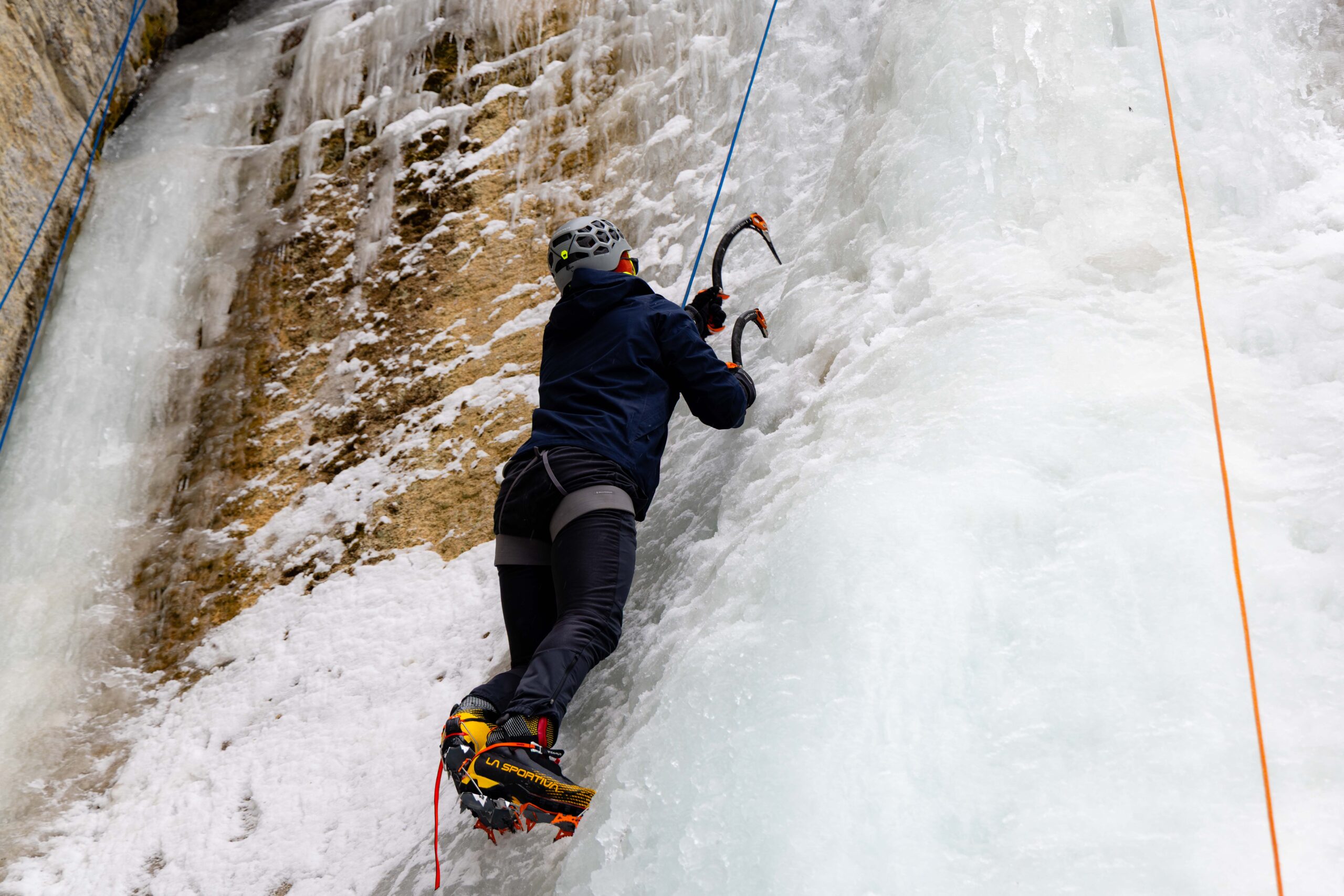 The first part of the beginner’s course was learning what the heck ice climbing is. This meant how to use our ice axe, best practices for using the crampons on the wall, moving on the wall, and, of course, staying safe.